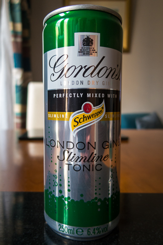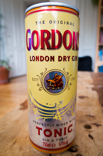 Gordon’s London Dry Gin Perfectly Mixed with Tonic er en 250 ml. aluminiumsdåse på 6,4% vol. Gordon’s velkendte gin blandet med en ukendt generisk tonicvand, der ifølge ingredienslisten dog indeholder ægte kinin.