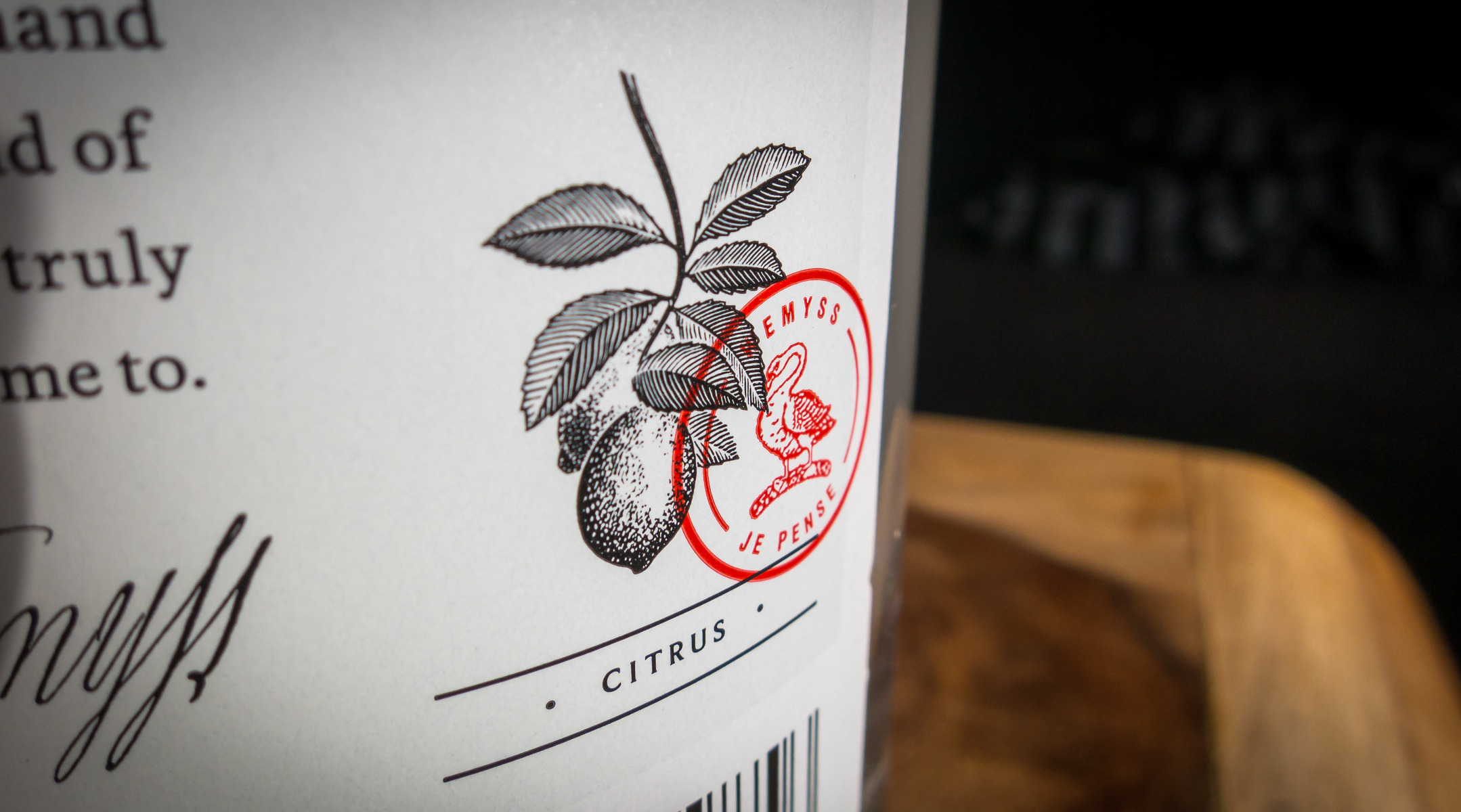 Flasken er solid og tung med talrige referencer til Wemyss-klanens historiske arv. Fx årstallet 1565 på flaskens hals og klanens crest med en svane og motto “Je Pense” (I think) på etiketten. Det tykke papir til etiketten, font og flaskens vægt vidner om et produkt, hvor intet er overladt til tilfældighederne, og kun det bedste er godt nok. Flasken er med til at understrege ginnens høje kvalitet.