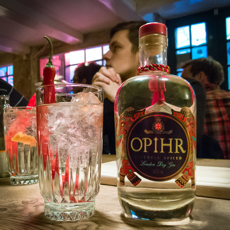 Første gang jeg havde fornøjelsen af at lege med Opihr Gin, var i forbindelse med en af mine Copenhagen Gin Walks tilbage i januar 2014. Der lagde vi ud med en G&T på The Bird & The Churchkey med Opihr Gin, Fever-Tree Tonic, garneret med en seriøs chili. Det var op til hver enkelt deltager, hvordan de ville anvende chilifrugten i drinken. De modige (og dumdristige) skar chilien i småstykker. De mere velovervejede (mig selv) snittede en enkelt flænge eller prikkede huller i chilifrugten, så drinken fik et mere afdæmpet chilipræg. Det blev en ganske underholdende og interaktiv drink, hvor flere i den grad fik varmen hen imod bundsjatten, da chilien havde trukket ekstra længe.