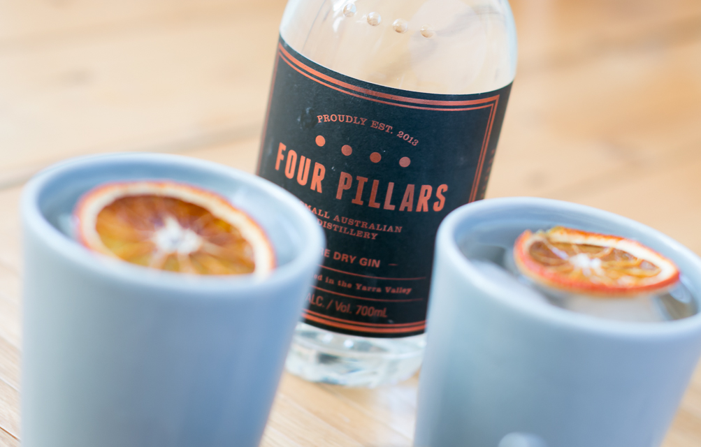 Four Pillars Distillery blev lanceret som et crowd funding-projekt tilbage i 2012, og med en succesrate på 300 procent lancerede de deres første gin, Four Pillars Rare Dry Gin, i slutningen af 2013. Ginnen er rig på velkendte gin botanicals som enebær, korianderfrø, kvan, kardemomme, lavendel, kanel og stjerneanis. Af mere eksotiske botanicals finder vi tasmansk peberbærblad, lemon myrtle og friske hele australske appelsiner. Og det er sidstnævnte, der skal leges med i ugens Gin & Tonic.