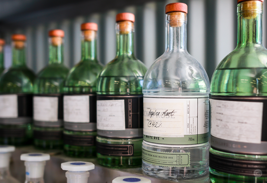 Langt størstedelen af faciliteterne hos Archie Rose Distilling Company tilhører whiskyproduktionen. Det kræver en del plads at malte, mæske, gære, destillere og ikke mindst fadlagre whisky. Men i et lille hjørne bag en af de mange reoler med egetræsfade med whisky finder man en lille 100-liters tasmansk bygget destillator ved navn ‘Lil’ Wayne’. Men man skal ikke lade sig snyde af Lil’ Wayne’s beskedne udseende, for der er tale om et højt specialiseret apparat til produktion af gin.