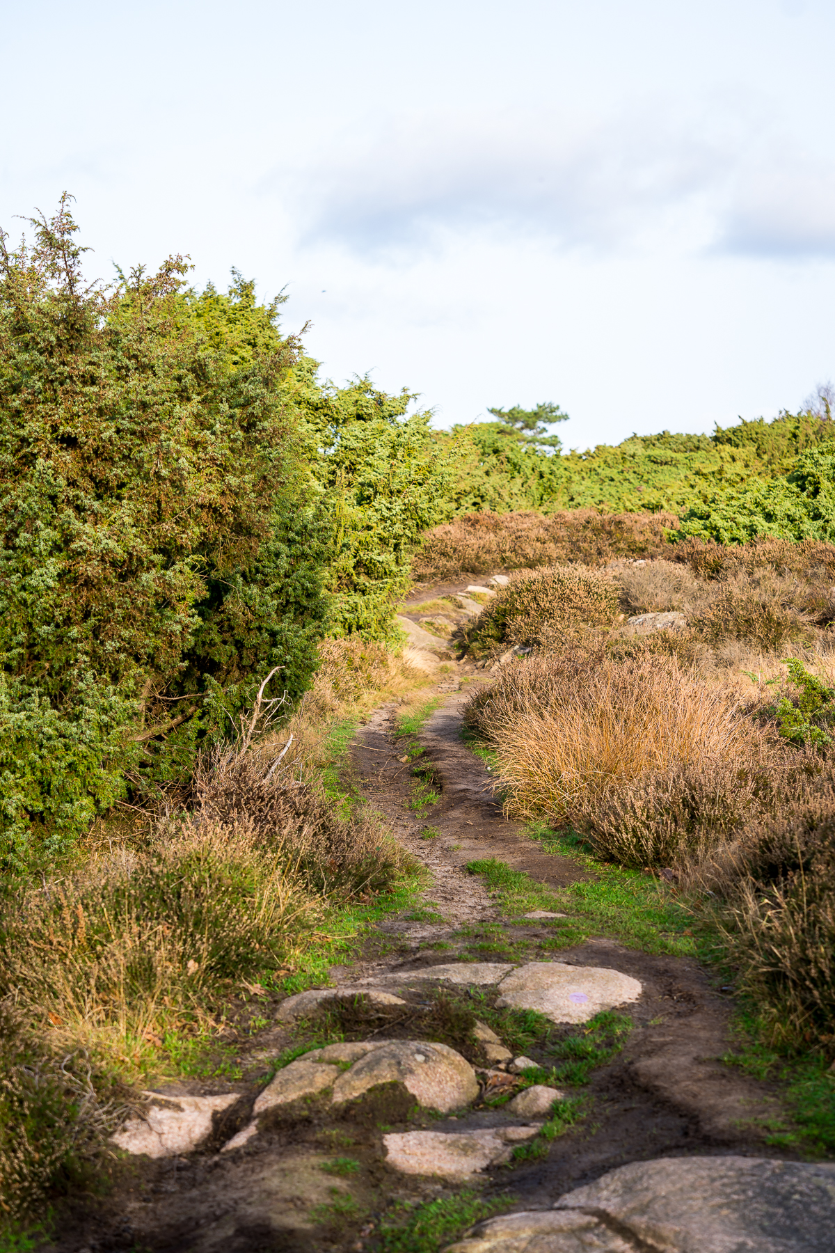 Et af de faste plukkesteder er Slotslyngen på den nordvestlige del af øen. Med græssende får og udsigt til Hammershus Borgruin fra områdets højeste punkt, Finnens Top, er det ikke så underligt at Slotslyngens enorme enebærbuske var inspirationskilde til Martin Kofoeds gineventyr.