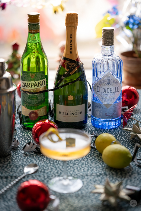 Reklame: Carpano Dry Vermouth anvendt i denne artikel har jeg fået tilsendt gratis af spiritusdistributøren Conaxess. Tak for det! Gin og champagne har jeg selv købt.